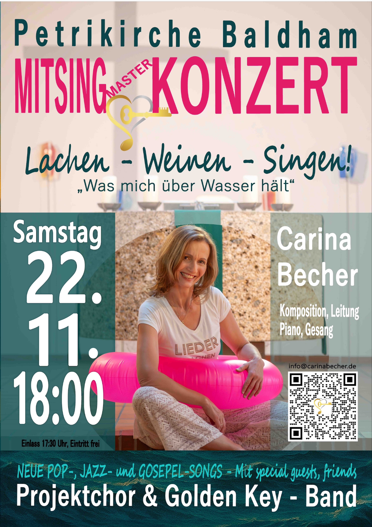 Mit Carina Bechers Liedern wie z.B. „Lasst uns Klangbrücken bauen“, „Prüft alles – Keep the good things“, „Mutig, stark, beherzt und „Alles, was ihr tut“ (geschehe in Liebe) soll die Gemeinschaft gestärkt und Miteinander spürbar und basierend auf christlichen Werten die Selbstverständlichkeit von Demokratie und gegenseitiger Akzeptanz erlebbar werden.