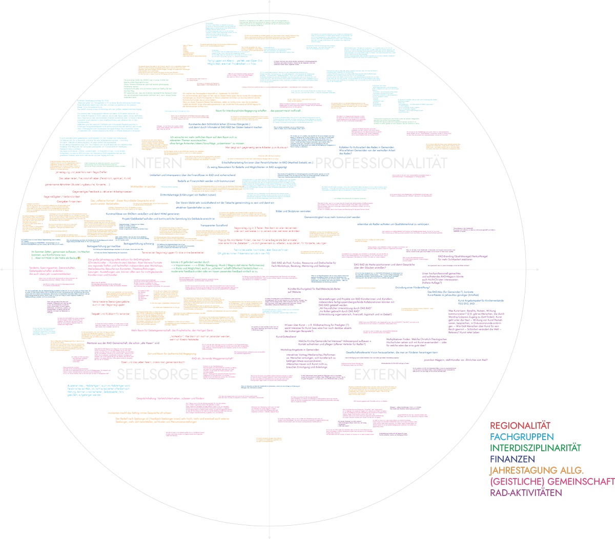 „Das RAD“ (www.dasrad.org) ist eine Gemeinschaft von Christinnen und Christen in künstlerischen Berufen. Uns verbindet – in großer Vielfalt – unser christlicher Glaube und unsere künstlerische Tätigkeit in unterschiedlichsten Sparten. Einmal im Jahr treffen wir uns zu einer dreitägigen Tagung – eine Mischung aus Konferenz und Netzwerk-Treffen, um uns gegenseitig künstlerisch, geistig und geistlich zu bereichern und zu inspirieren.